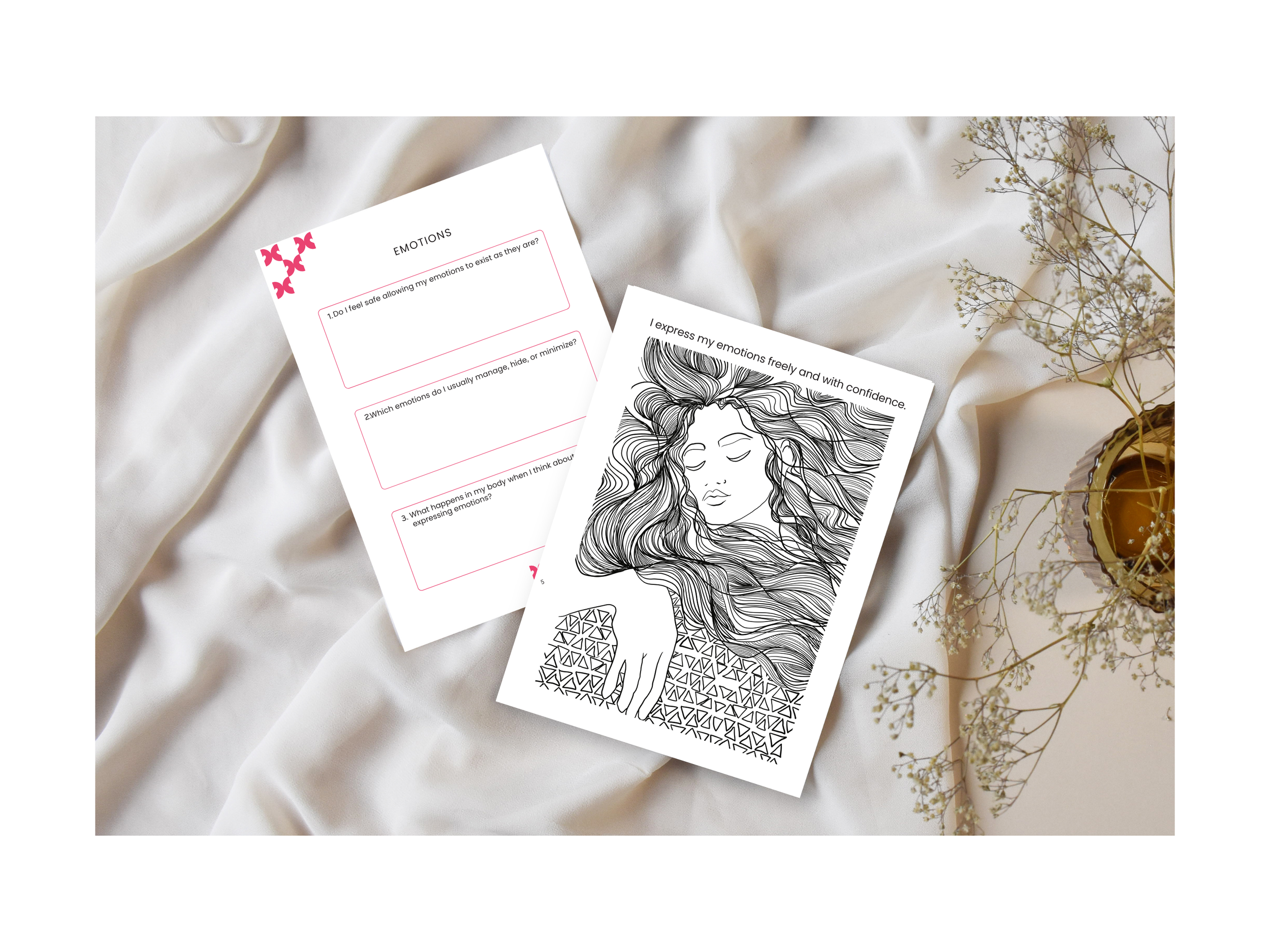 Self-worth, boundaries, rest, grief, joy, values. Pages that meet you where you are.